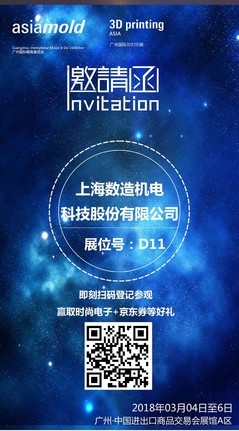上海數(shù)造將亮相第十二屆廣州國(guó)際模具展覽會(huì)(Asiamold),上海數(shù)造的發(fā)展道路離不開(kāi)您的支持與肯定。2018年3月4日-6日,廣州.中國(guó)進(jìn)出口商品交易會(huì)展館......